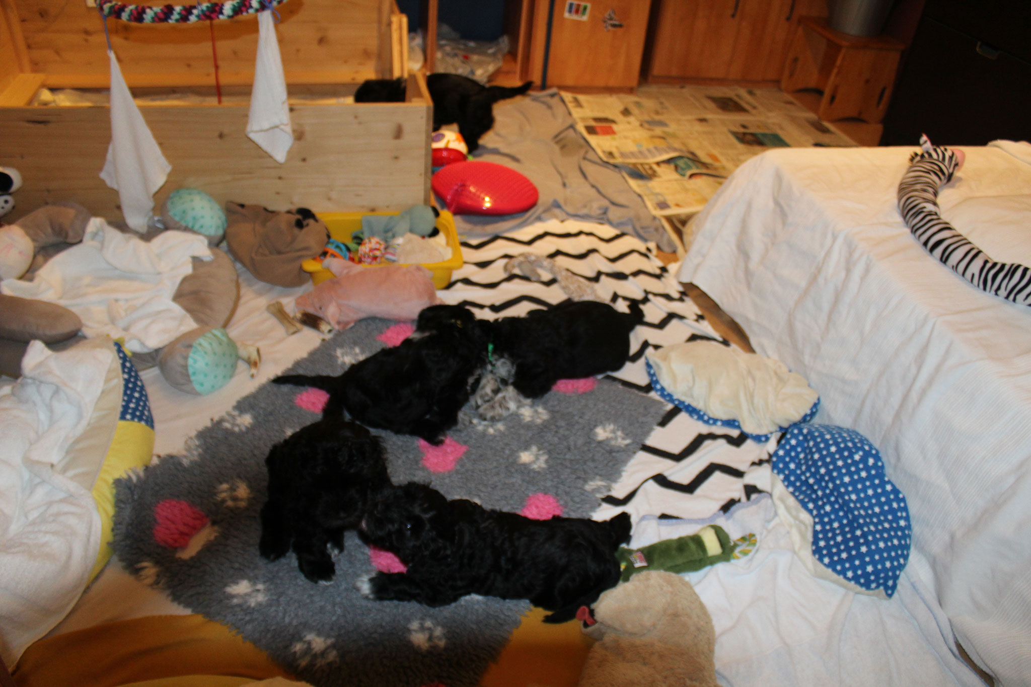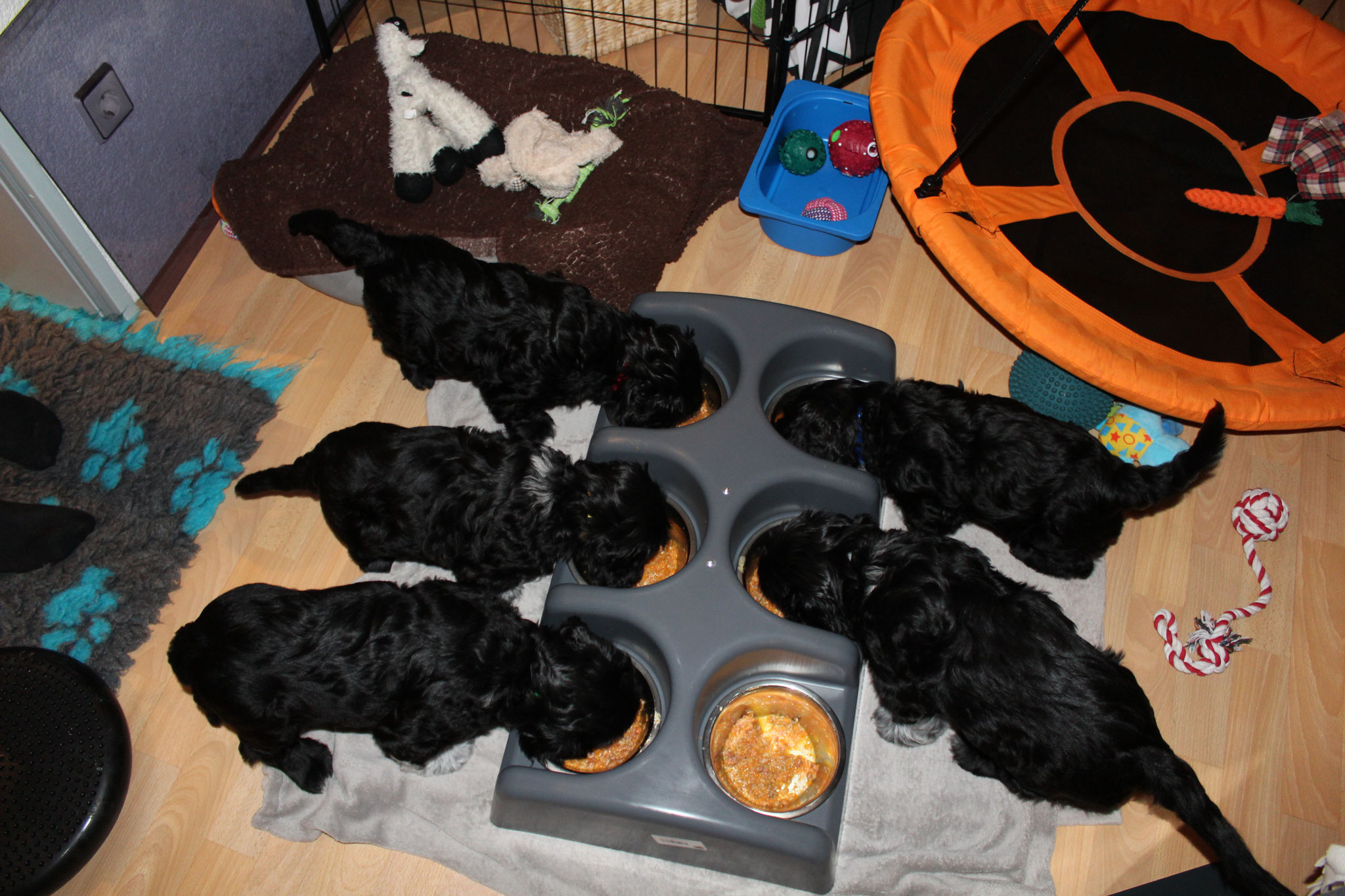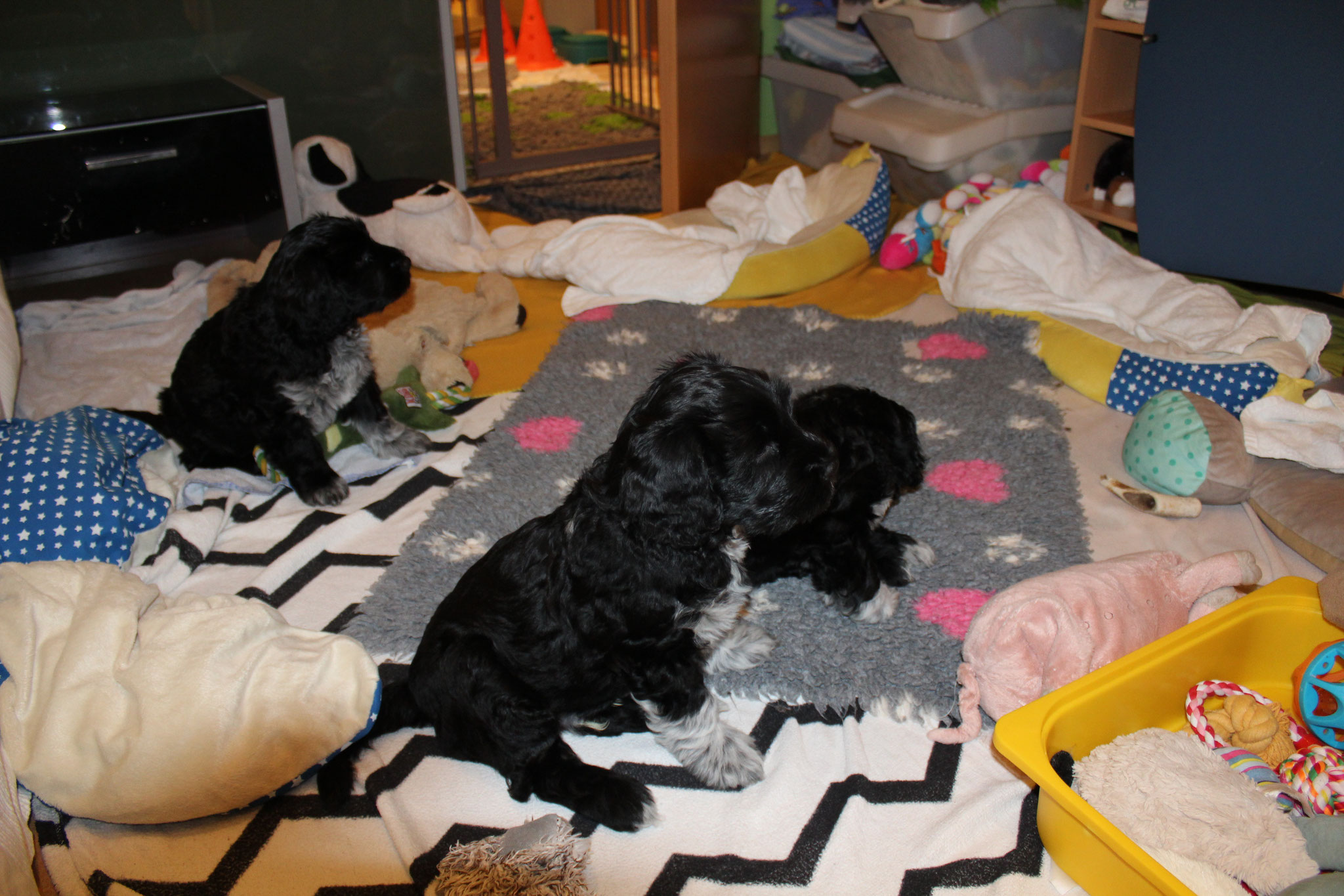 Wir hatten wieder viele liebe Besucher diese Woche. Auch die Halterin des Deckrüdens hat die Welpen begutachtet und geknuddelt.
